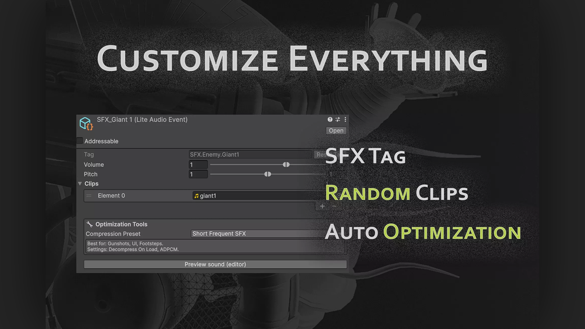- Addressables: Use Unity Addressables to load your sounds efficiently.