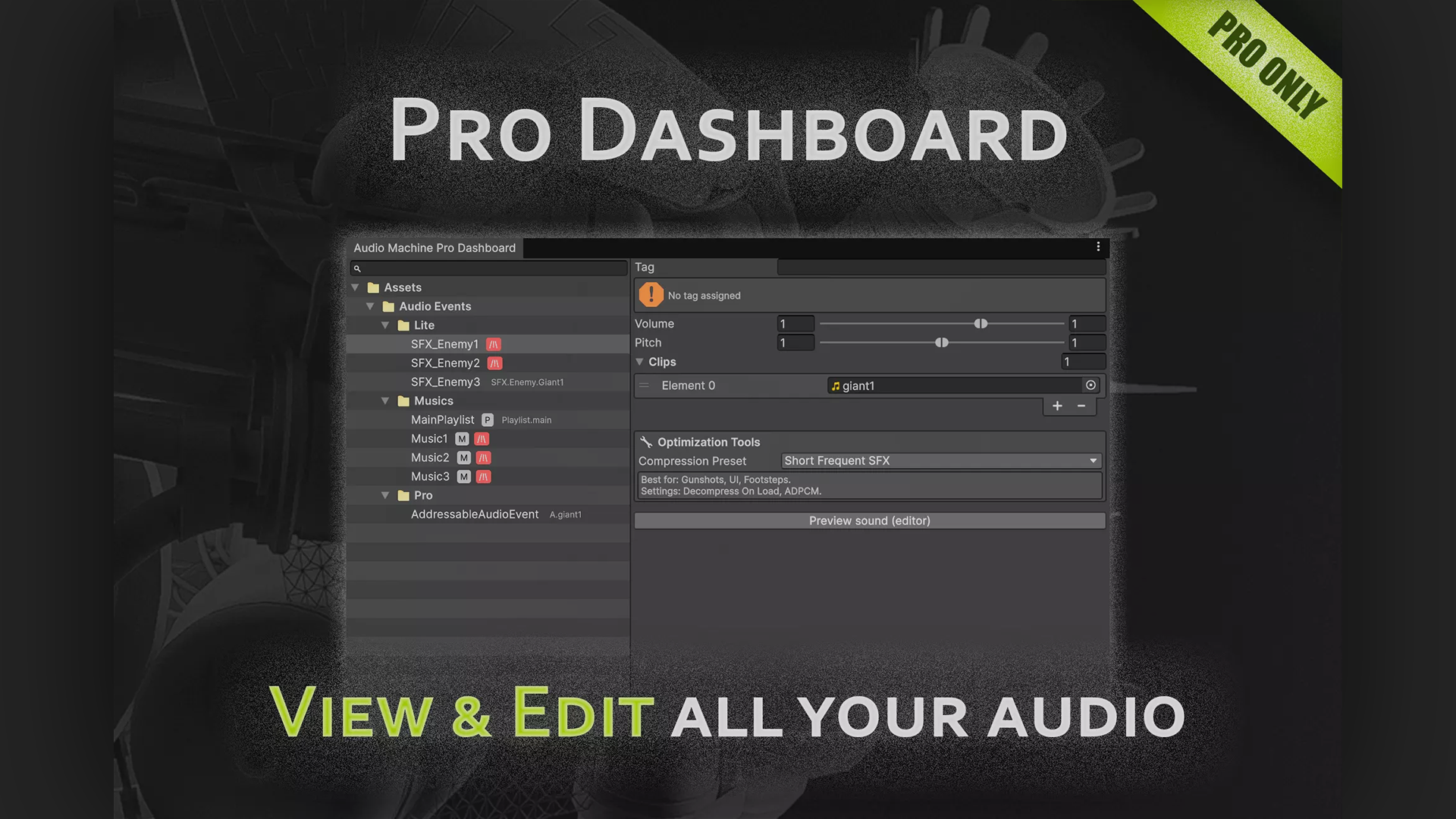 - Smart Registry: A Zero-Setup database that auto-detects your audio assets. Just create an asset, tag it, and play.